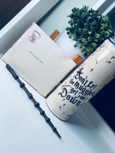 Double insulated Steel tumbler with your Hogwarts acceptance letter and random Harry Potter Wand